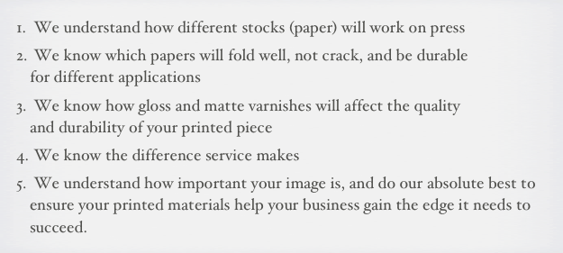 With over 25 years of experience in the print industry, we’re proud to call ourselves experts. Here’s why we think you should be hiring us for your next project: